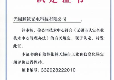 • 無錫市企業技術中心證書
